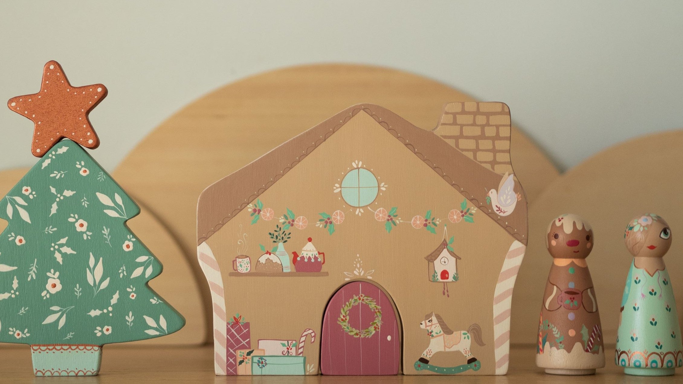 Our designs are whimsical and festive, with Christmas inspired themes and a rustic folk art vibe.