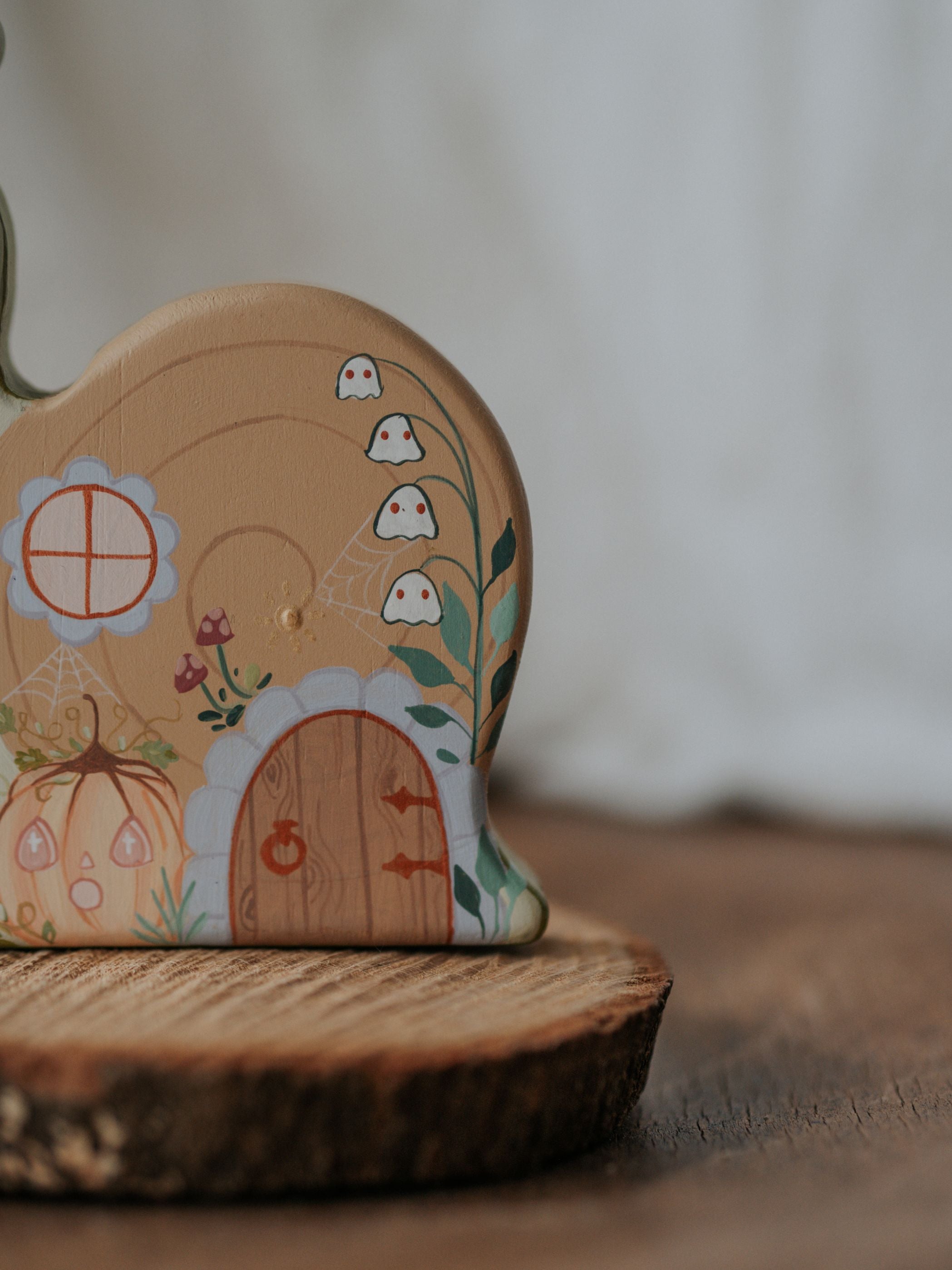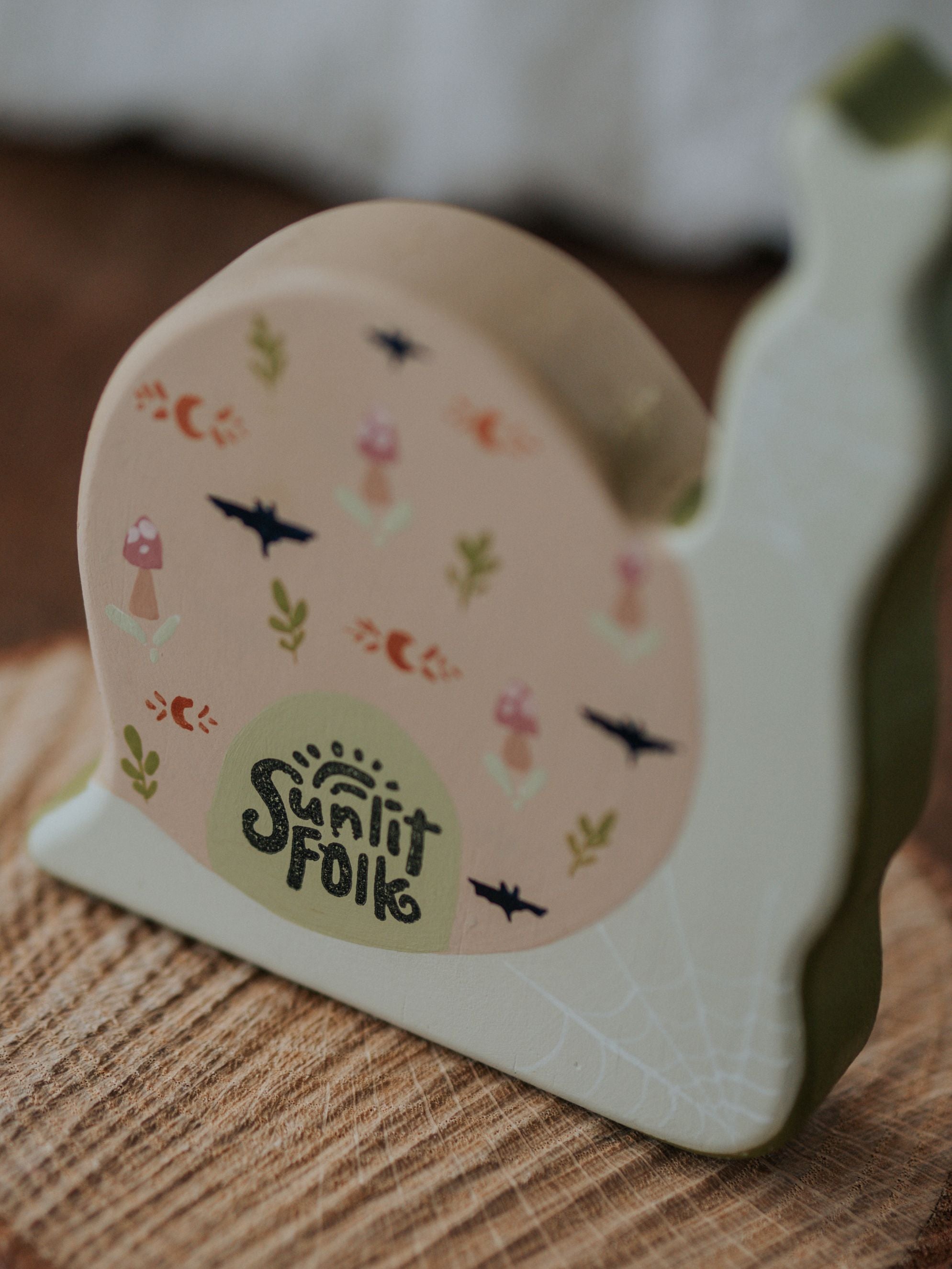 Our handcrafted whimsical wooden snail is an excellent addition to your child's nature play, storytelling and seasonal table. Bringing a sense of magic and joy to any small world play space.