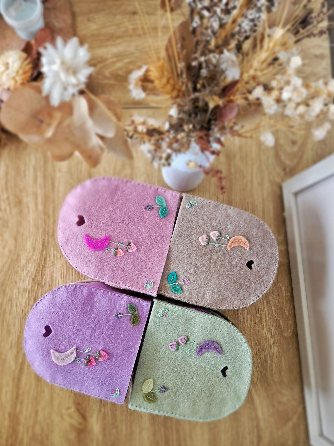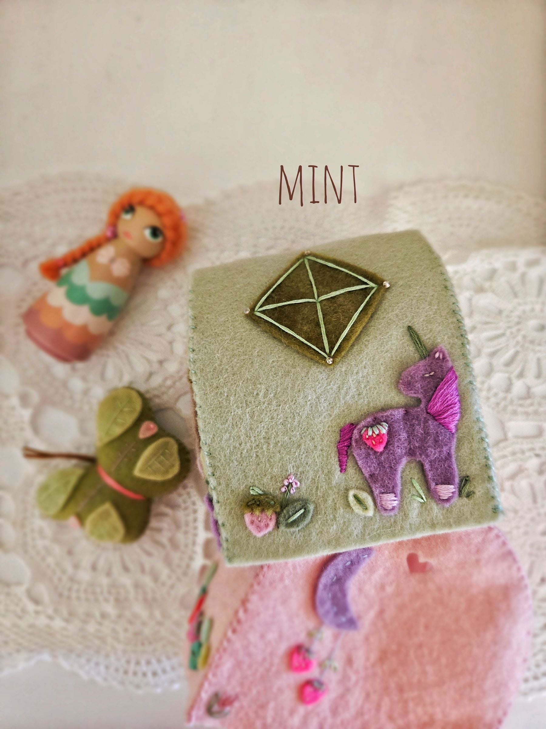 Materials used - high quality 100% hand-dyed wool felt, cotton thread, cotton lining, interfacing (to strengthen walls), seed beads, & a whole lot of love ♥︎